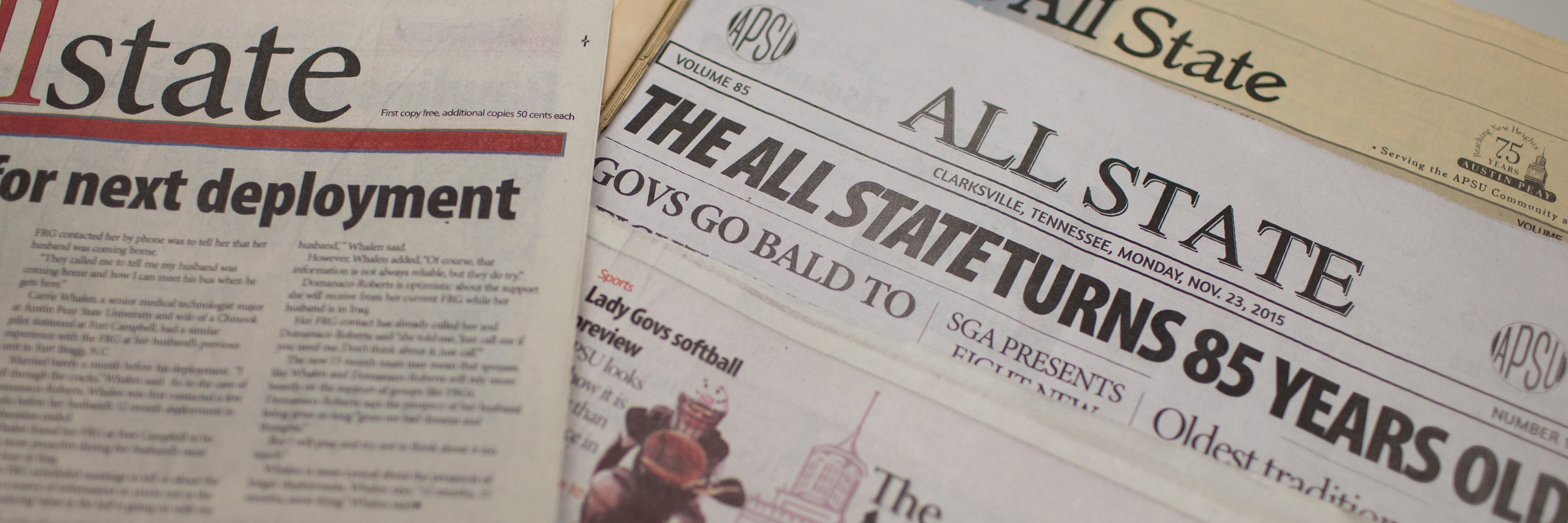 Student Publications is home to APSU's award-winning student newspaper and online news source, The All State. The All State staff includes students of various majors and backgrounds. The All State offers a wealth of opportunities to learn, gain valuable experience in many different fields, meet other APSU students and learn by doing what students enjoy. Whether it's news writing, photography, desgin, advertising, social media, multimedia, video, blogging, copyediting, or leadership, The All State has an opportunity for students who wish to gain experience and contribute to the campus community.